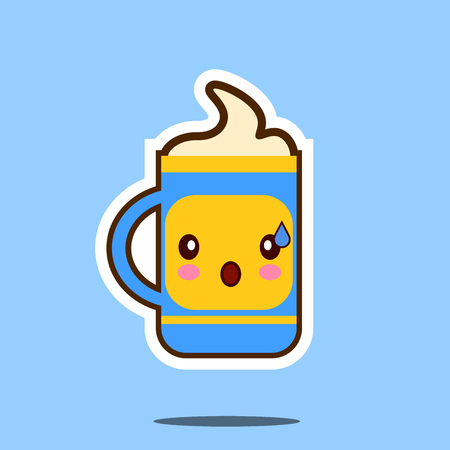 青の背景に分離されたコーヒー漫画かわいいキャラクターのかわいいカップ フラット デザイン イラスト の写真素材 画像素材 Image